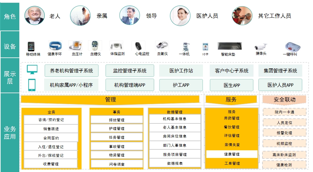 Empowered by intelligent elderly care platforms, driven by big data for management and service innovation.